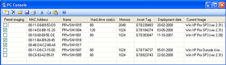 The PC Console (Figure 5) maintains a record of the machines within the environment that have been imaged along with